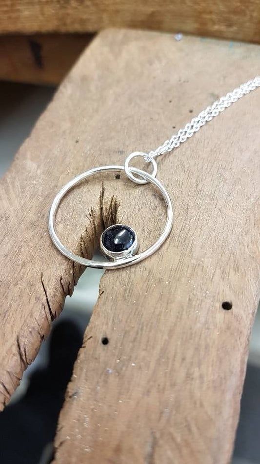 Silver Blue Goldstone Circle Necklace