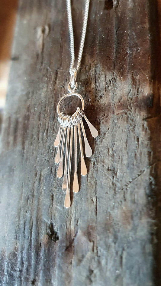 Blue Goldstone Sterling Silver Hammered Bar Pendant