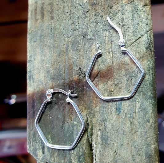 Sold outSterling Silver Hexagon Hoops
